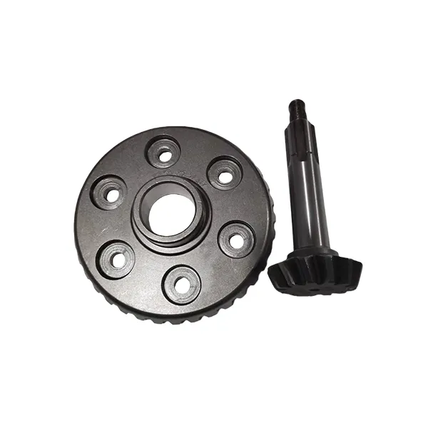 Коническая шестерня главной передачи для трёхколёсных транспортных средств. Комплектующая для мотоциклов. Автомобильный компонент. Металлическое изделие. Производитель:Юаньчжуч YZ. Коническая шестерня главной передачи для трёхколёсных транспортных средств является ключевым передаточным элементом в приводной системе заднего моста, отвечающим за передачу мощности от карданного вала к колёсам, а также за изменение направления и регулировку скорости вращения. Материал изделия — широко применяемая цементуемая легированная сталь (20CrMnTi), обладающая высокой прочностью, хорошей ударной вязкостью и устойчивостью к усталости, что делает её пригодной для конических шестерён главной передачи трёхколёсных транспортных средств, подвергающихся высоким нагрузкам. Подходит для моделей с высокими требованиями к передаче мощности, таких как трёхколёсные транспортные средства с ДВС, эффективно продлевая срок службы. Ассортимент продукции включает полный набор спецификаций и множество моделей. Произведено на заводе-изготовителе, с двойной гарантией качества и послепродажного обслуживания.