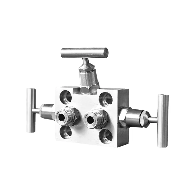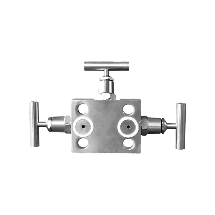 Трехклапанная группа. Арматура для контрольно-измерительных приборов. Клапанный узел. Изделие из нержавеющей стали. Точное литье. Функция — совместная работа с дифференциальным датчиком давления для осуществления измерений давления и защиты системы. Конструкционный состав: включает клапан высокого давления (левый), клапан низкого давления (правый) и уравновешивающий клапан (средний). Открытие и закрытие клапанов управляет подключением/отключением камер измерений положительного и отрицательного давления к точкам отбора давления, либо осуществляет разъединение/соединение камер положительного и отрицательного давления. Трехклапанная группа широко применяется в таких областях, как электроэнергетика, электротехника, проекты электромеханического оборудования и др. Ключевые преимущества — упрощение монтажа, обеспечение безопасности и снижение затрат на обслуживание.